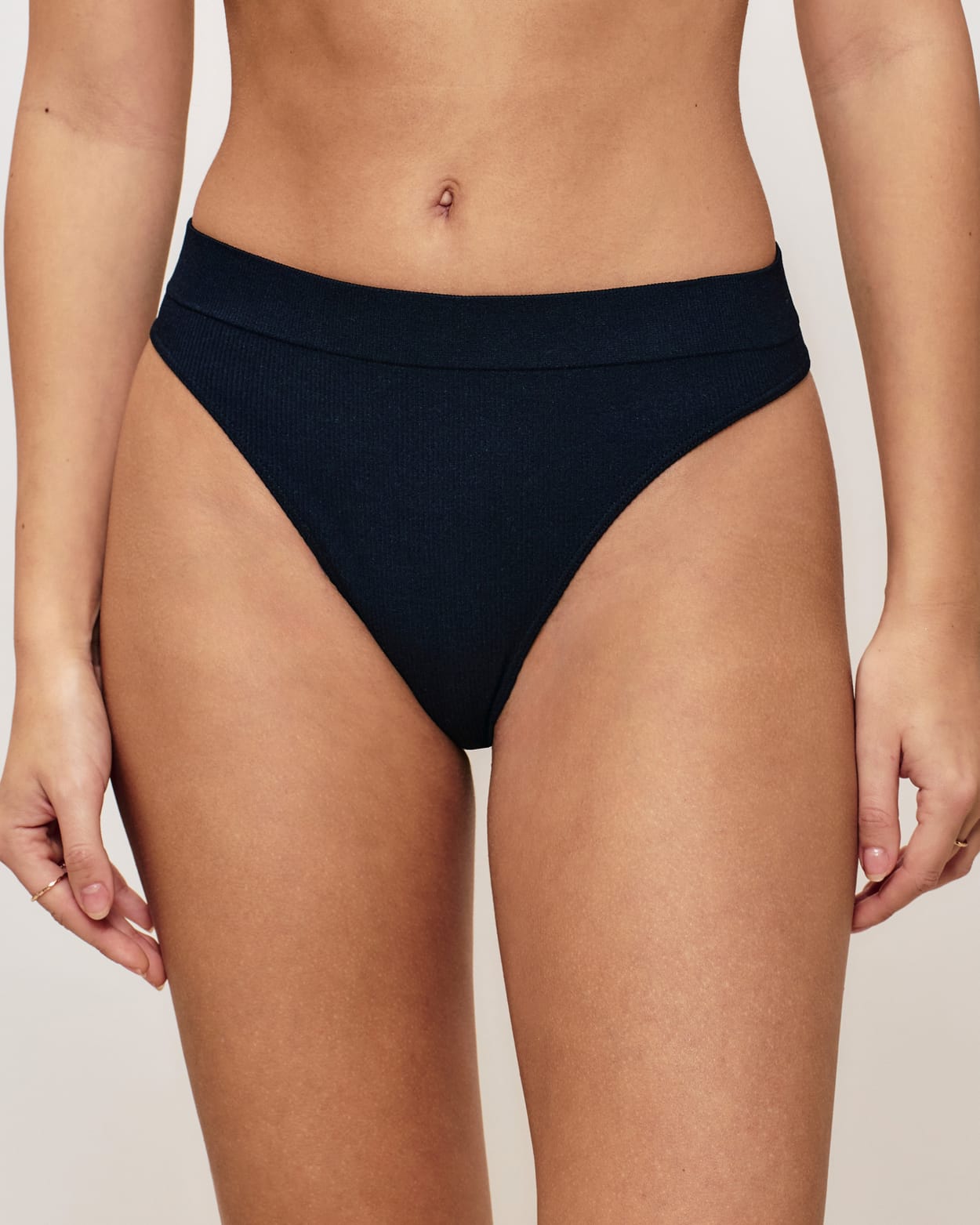 high-waisted ribbed thong