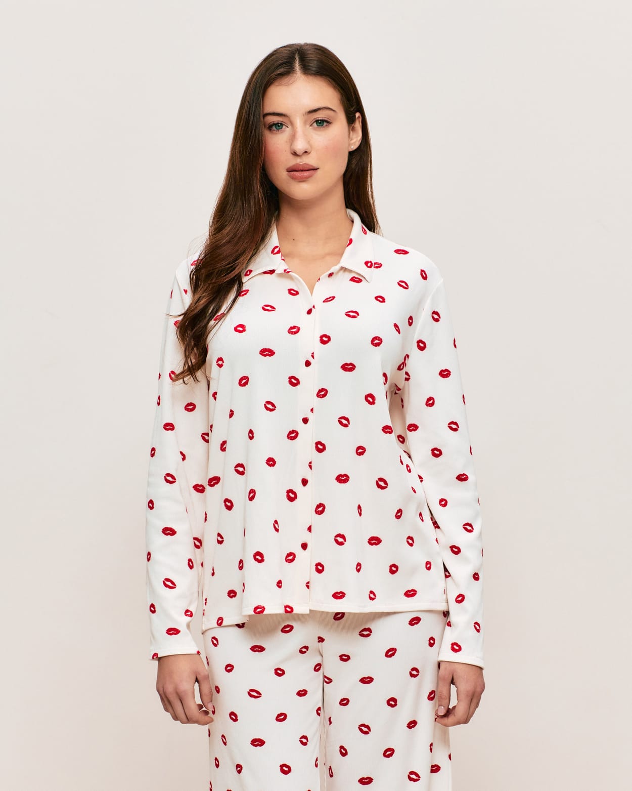 Ribbed jersey shirt with lip print