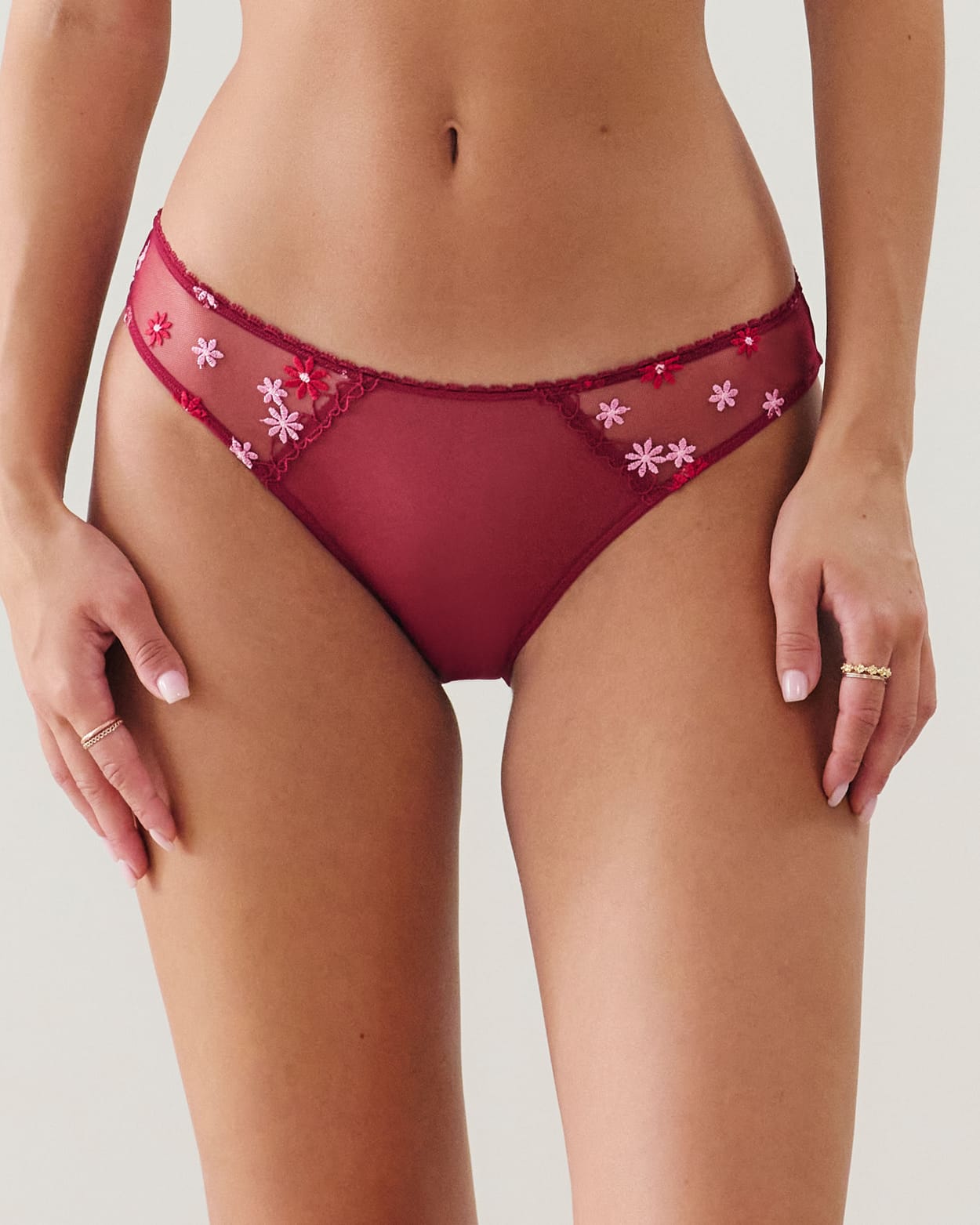 Brief with embroidered floral patterns