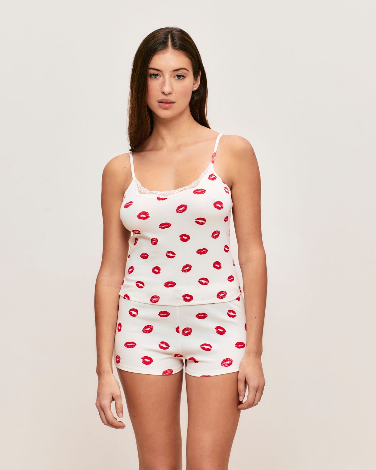 Jersey camisole with lip print;