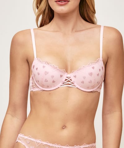 Balconette bra in mesh with heart embroidery
