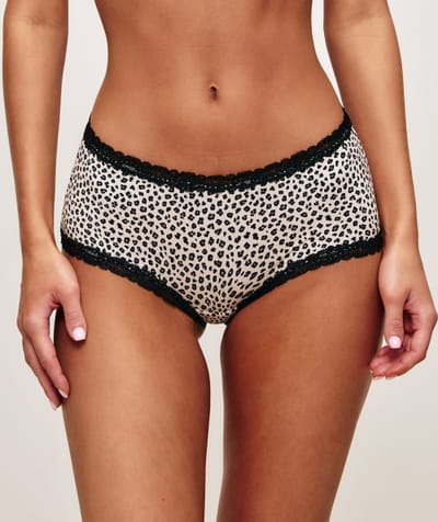 Leopard print microfibre and lace shorty