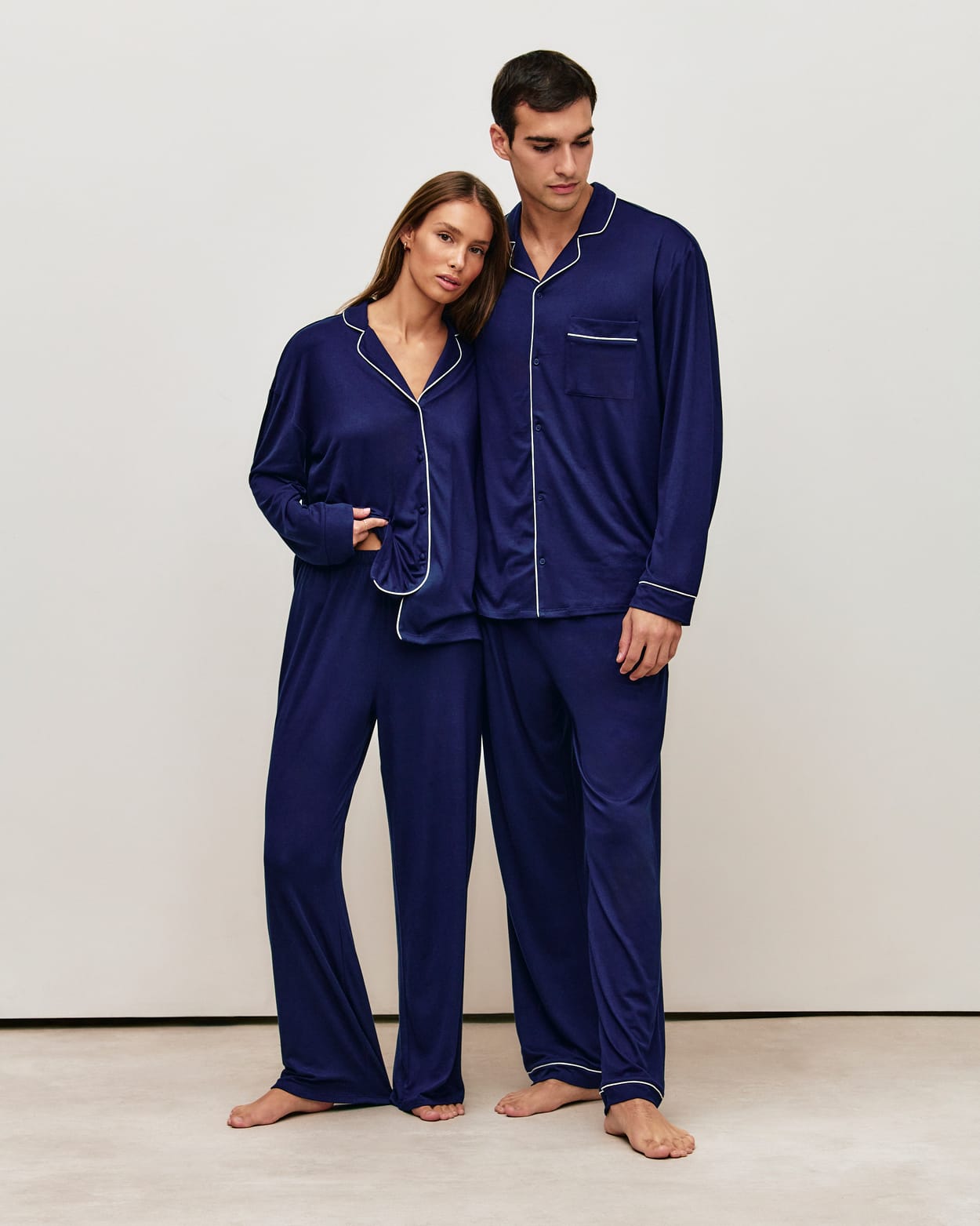 Fall for our HOTELPYJIZ pyjama set with a chic hotel style and ultra comfortable feel. This navy blue set, consisting of...
