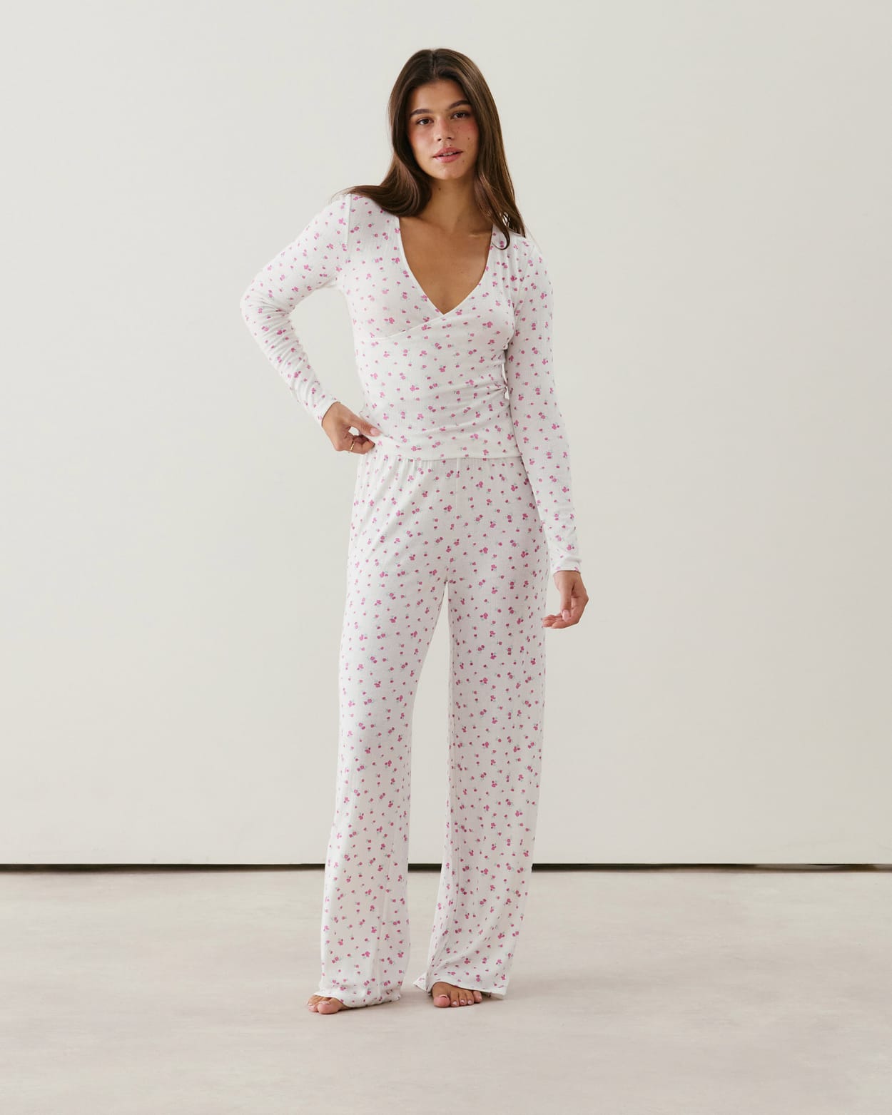 Floral pattern pointelle trousers