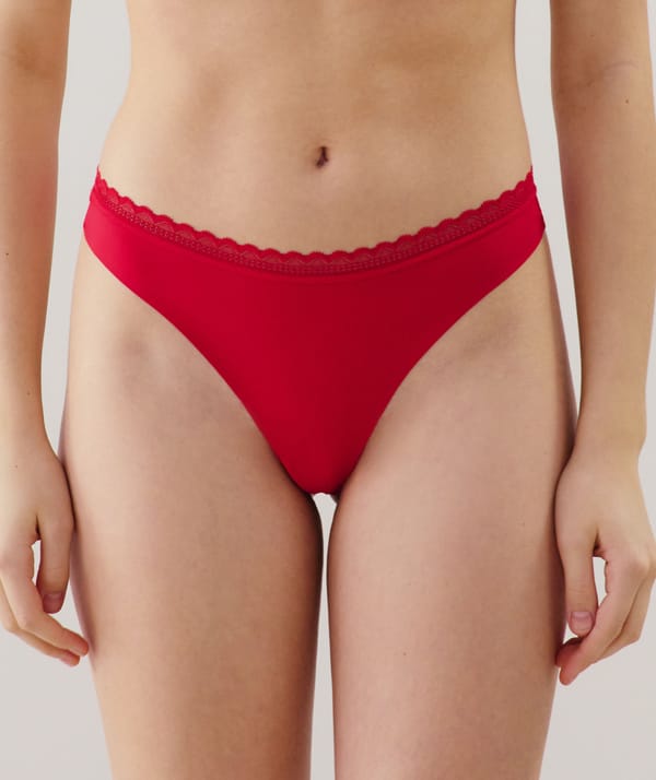 Microfibre and lace tanga briefs - red