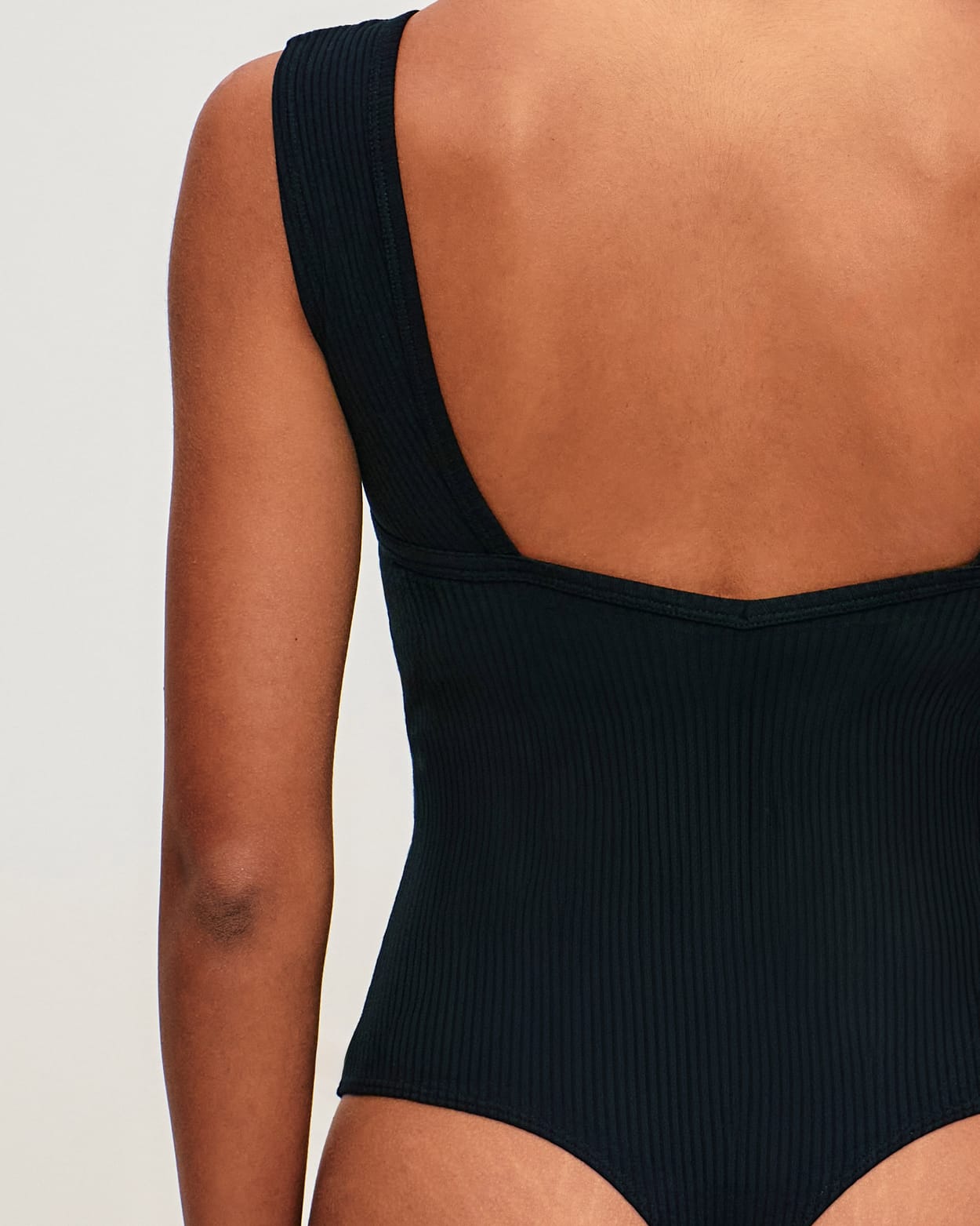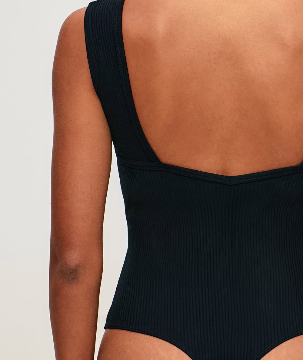 Ribbed cotton backless bodysuit with built-in pads