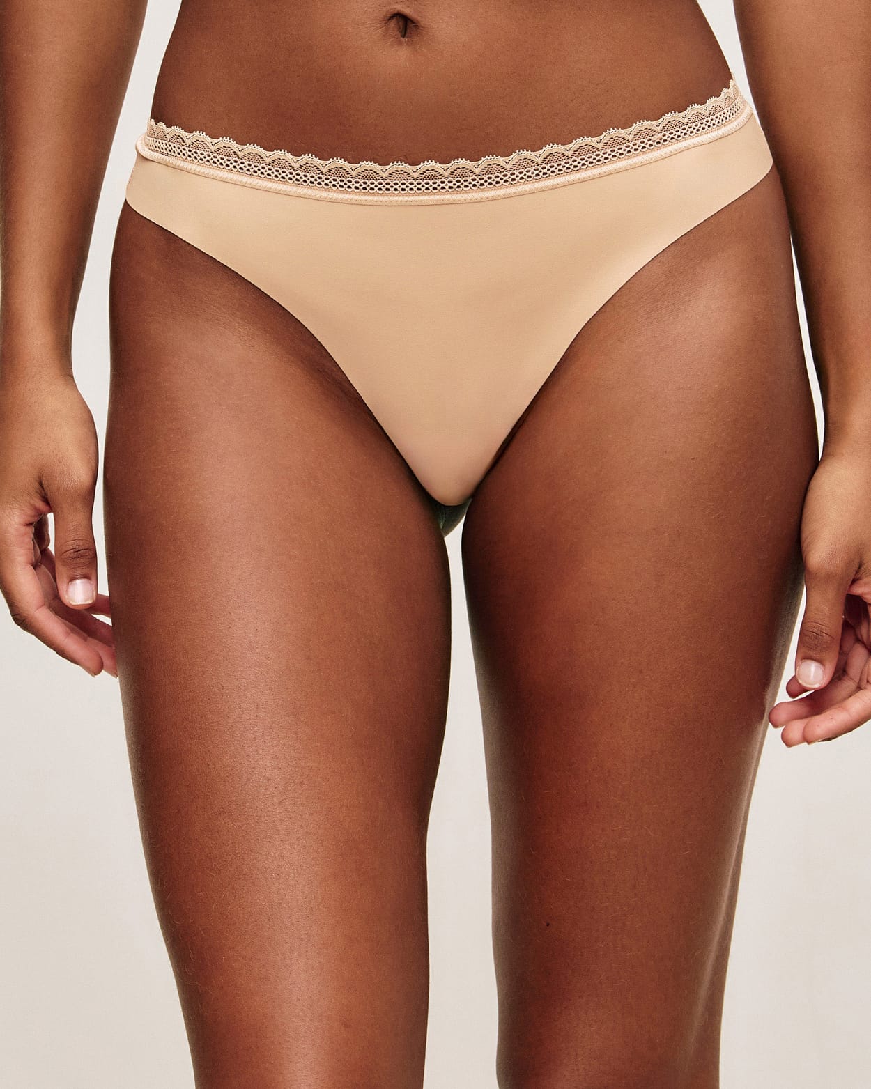 Microfibre and lace thong