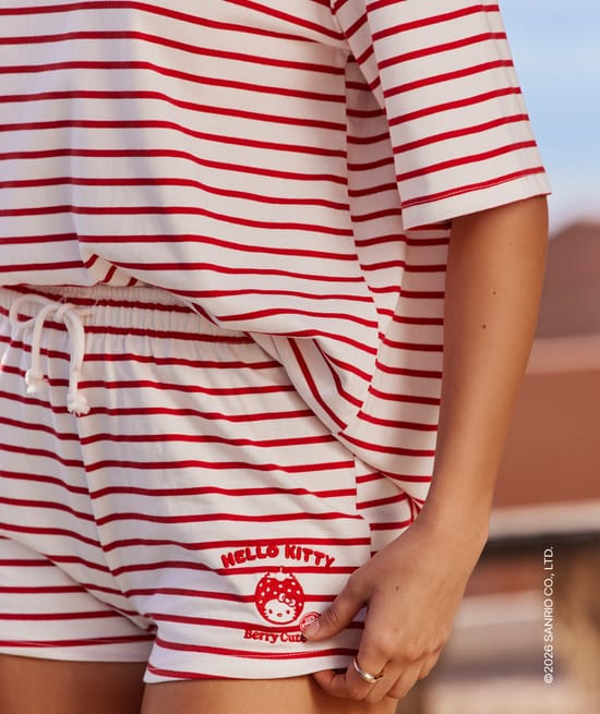 Short striped jersey with Hello Kitty embroidery