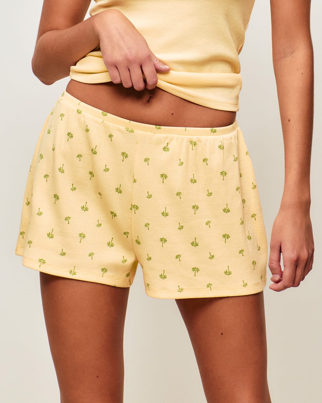 Palm print ribbed jersey shorts