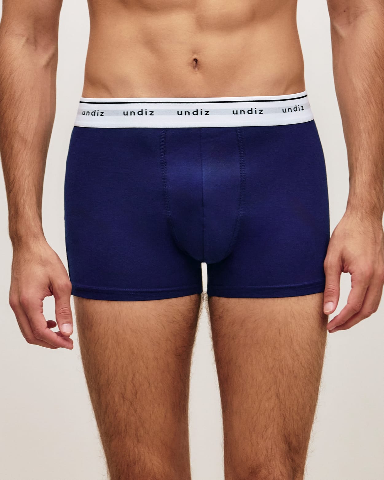 Discover the essential item for your underwear drawer: our navy blue cotton boxer, the essential basic for timeless eleg...