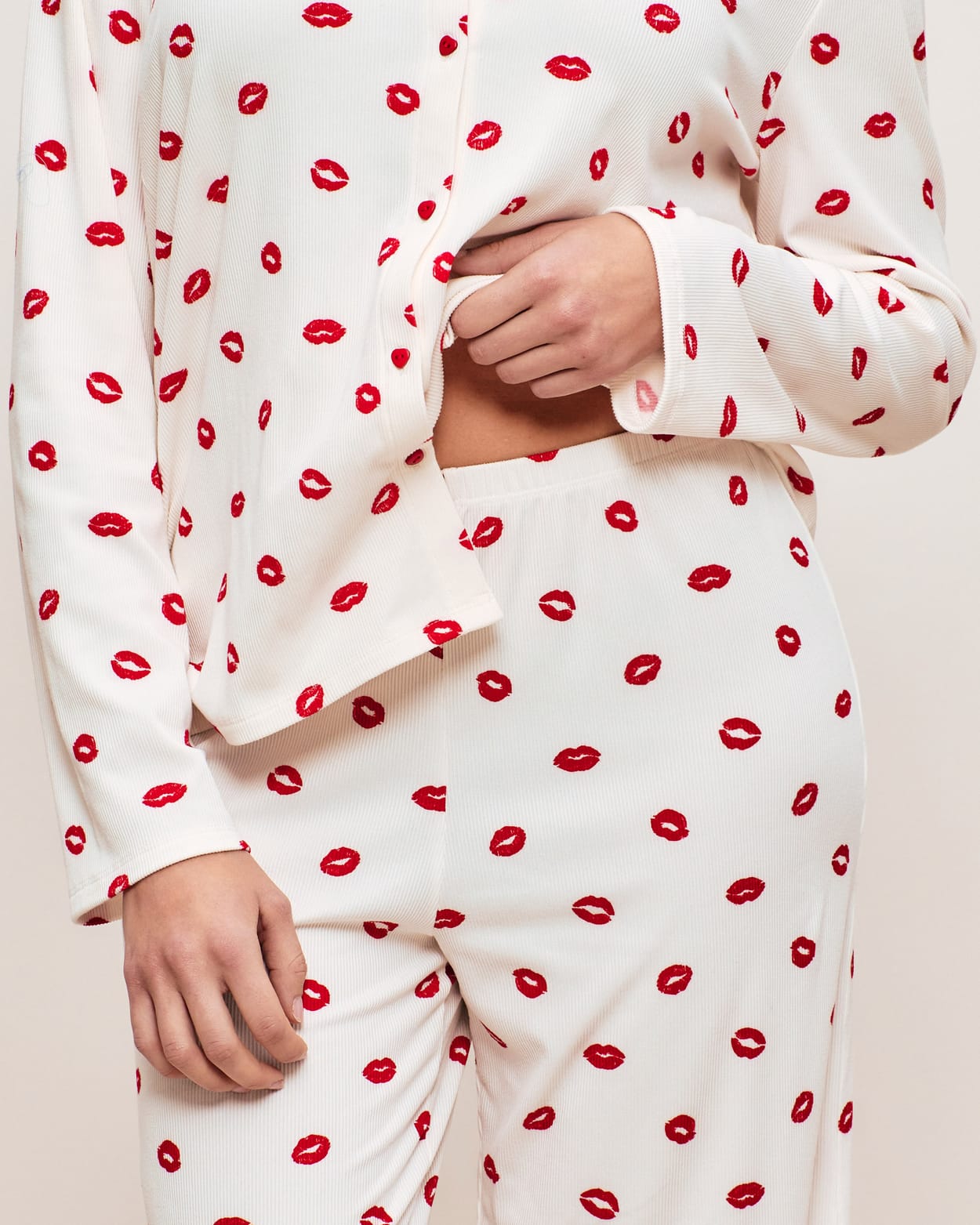Ribbed jersey trousers with lip pattern