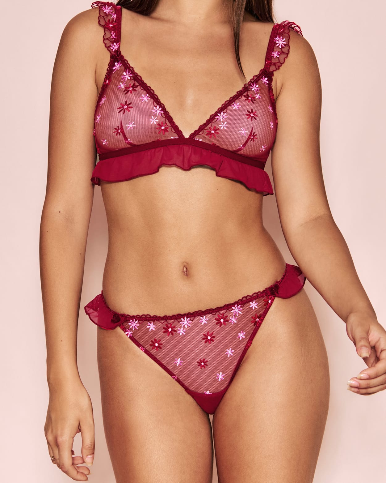 Brief with embroidered floral patterns