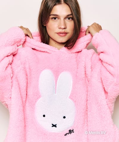 Cozy never looked so cute. The most adorable rabbit in the Netherlands is featured on our new collection of pajamas and homewear. In a pink and white universe, our exclusive colle... Cozy never looked so cute. The most adorable rabbit in the Netherlands is featured on our new collection of pajamas and homewear. In a pink and white universe, our exclusive collection featuring Miffy combines comfort and ultra-soft materials, little bows, and adorable patterns.