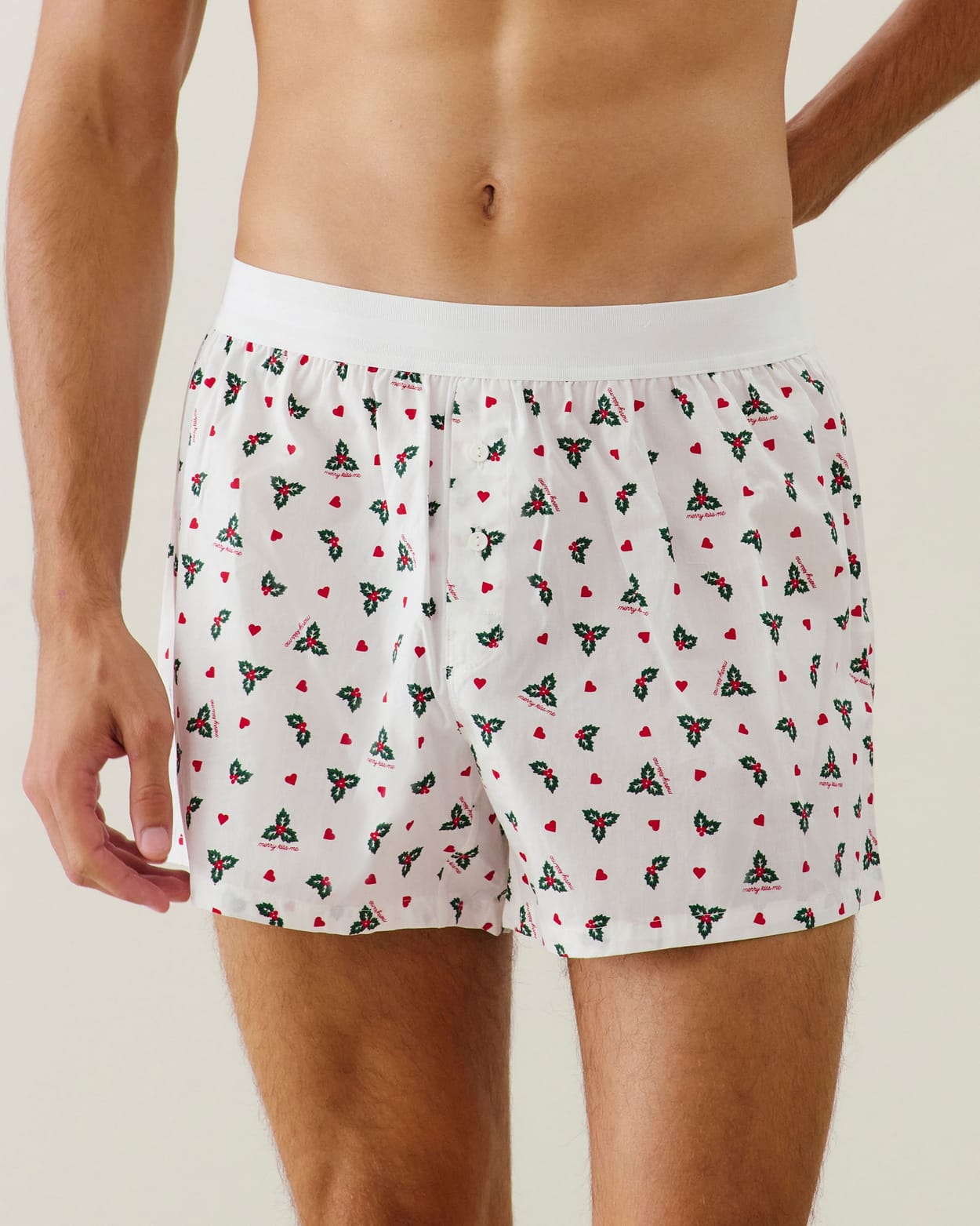 Cotton boxer shorts with holly and heart pattern