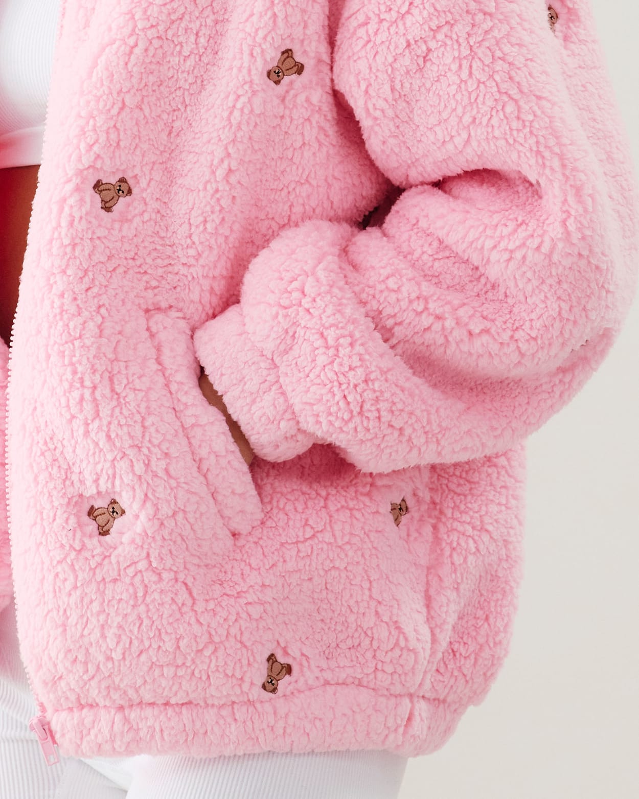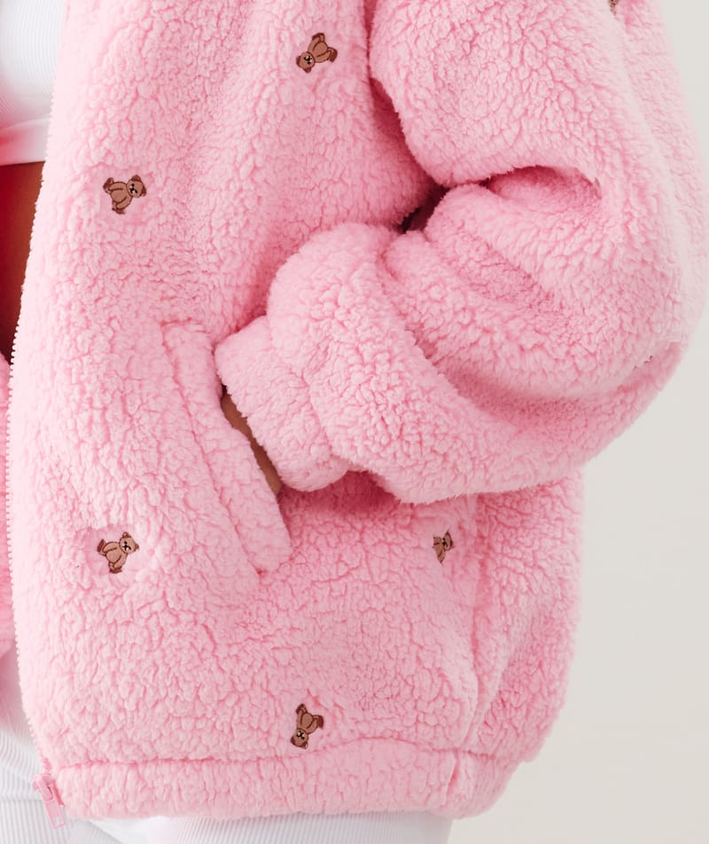 Fleece jacket with teddy bear embroidery;