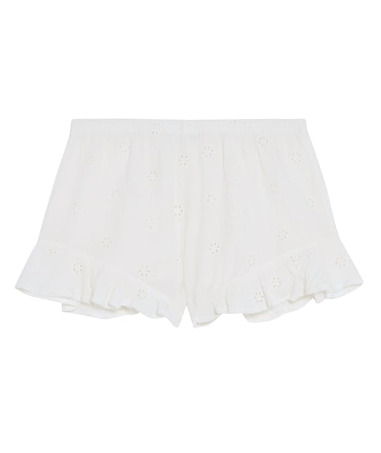 • Wrap-front pointelle T-shirt with strawberry pattern;