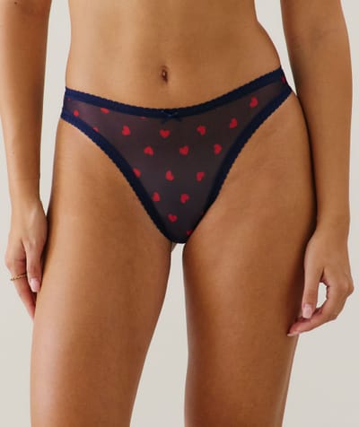 Heart pattern mesh thong;