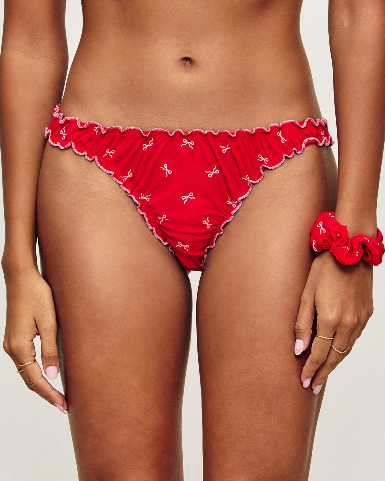 Thong and scrunchie set with bow pattern