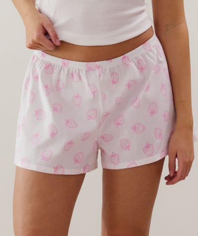 Short en coton à motifs fraises blanc