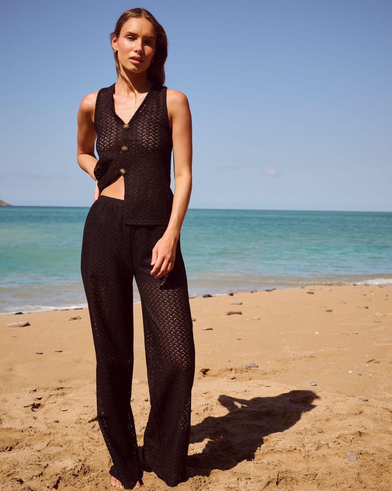 Pantalon droit crochet avec short intégré