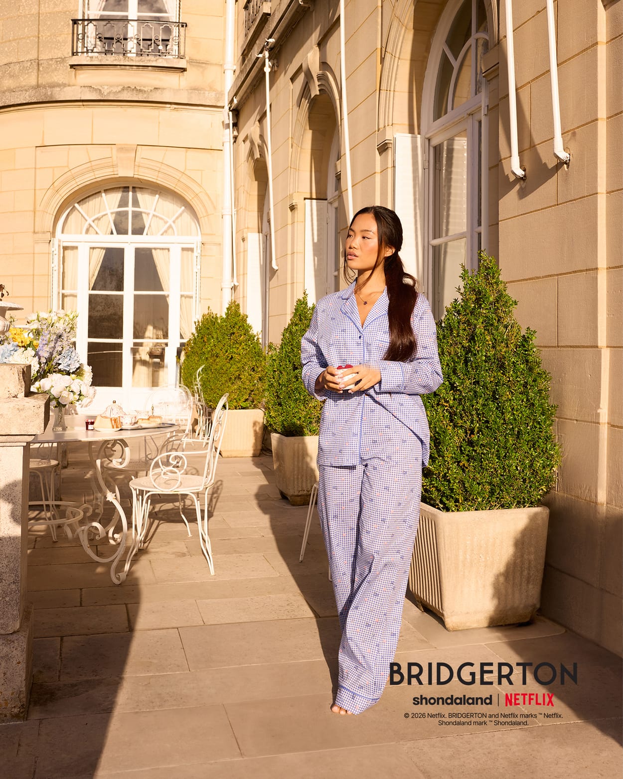 Pantalon en coton vichy avec motifs Bridgerton