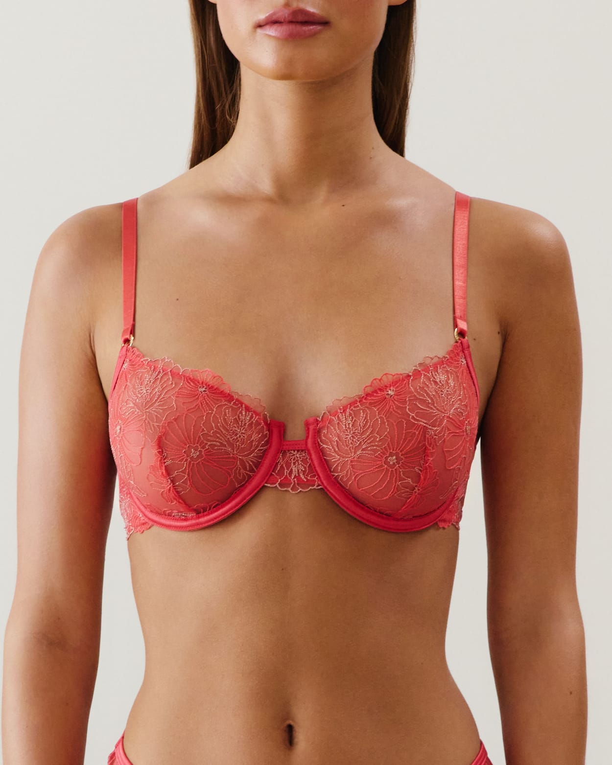Soutien-gorge corbeille en mesh brodé fleuri rose